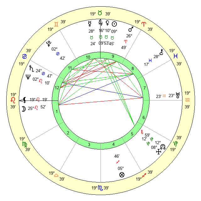 | Mercury | 28 Taurus 24 | 15 Aries 7 | 19 Virgo 43 |