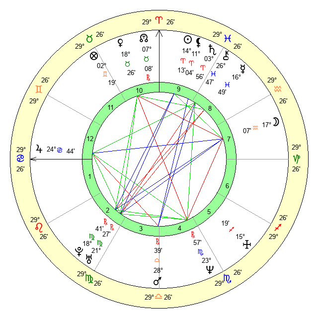 Venus | 18 Taurus 27 | 26 Pisces 2 | 24 Cancer 45 |