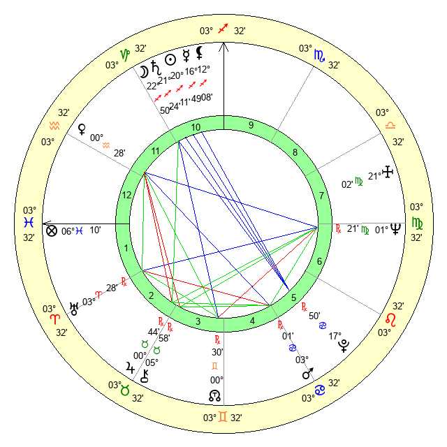 | Neptune | 1 Virgo 22 | 27 Pisces 7 | 29 Leo 17 |
