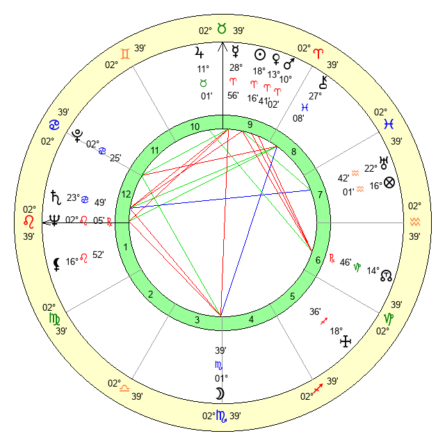 | Sun | 18 Aries 17 | 19 Aries 6 | 2 Leo 8 |