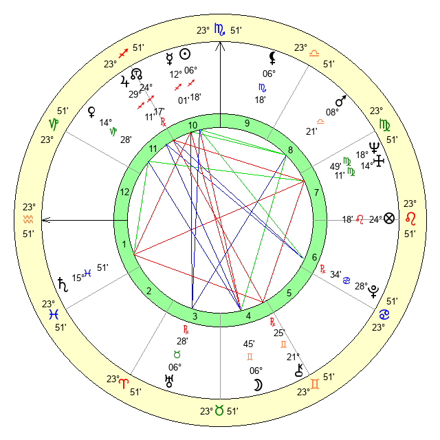 | Moon | 6 Gemini 45 | 11 Pisces 51 | 11 Virgo 14 |
