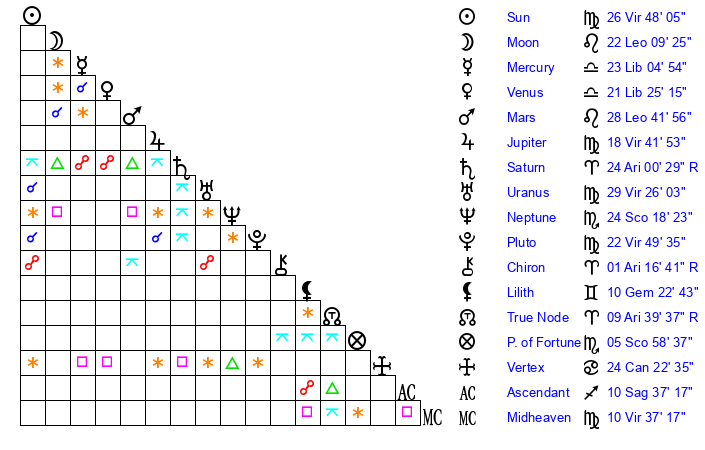 Sun | 26 Virgo 48 | 27 Virgo 0 | 23 Scorpio 24 |