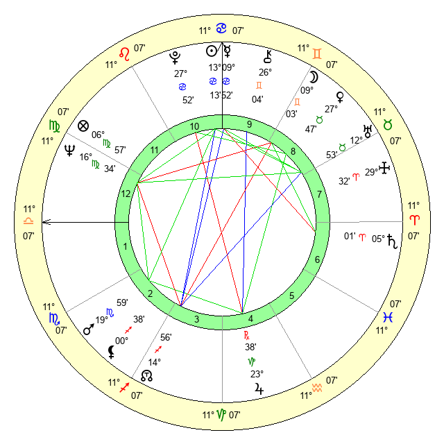 | Sun | 13 Cancer 13 | 13 Cancer 55 | 8 Libra 5 |