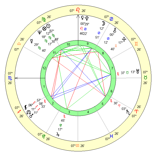 Venus | 0 Leo 46 | 7 Leo 9 | 18 Scorpio 35 |