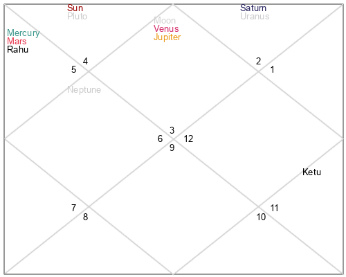 | Rahu | 5 Virgo 9 | 19 Pisces 48 | 0 Virgo 45 |