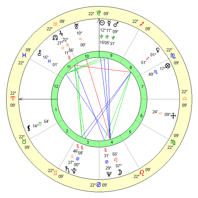 | Moon | 7 Leo 57 | 0 Pisces 52 | 14 Leo 42 |