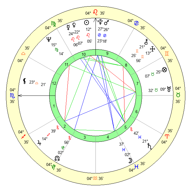 | Mars | 26 Cancer 18 | 28 Virgo 36 | 22 Virgo 13 |