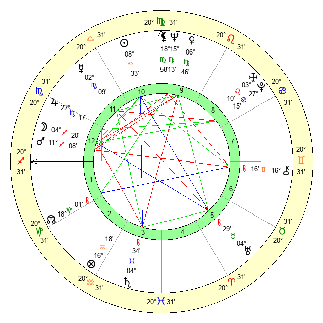 | Neptune | 15 Virgo 13 | 0 Aries 29 | 16 Virgo 43 |