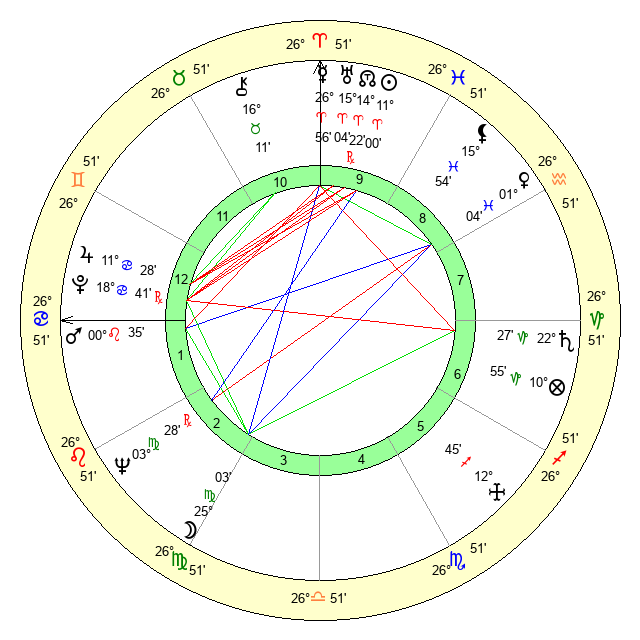 | Sun | 11 Aries 0 | 12 Aries 13 | 11 Cancer 44 |
