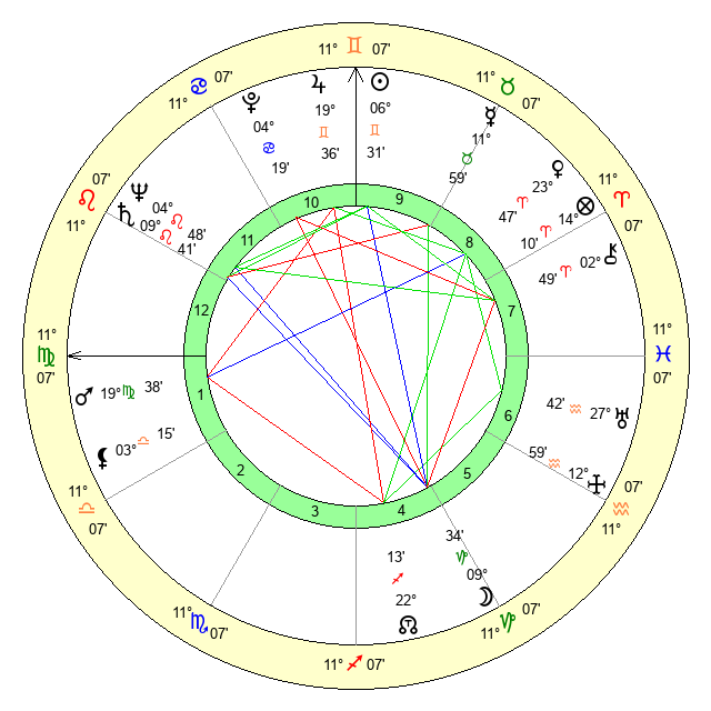 | Sun | 6 Gemini 32 | 7 Gemini 37 | 19 Virgo 6 |