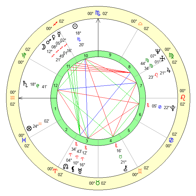 | Neptune | 7 Virgo 45 | 29 Pisces 35 | 6 Virgo 57 |