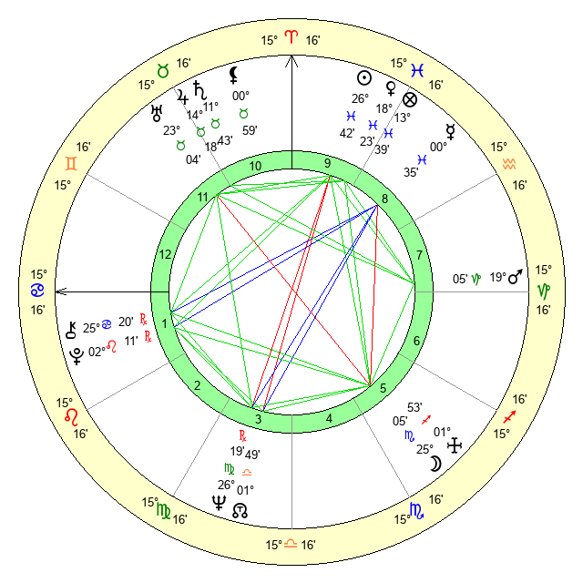 | Venus | 18 Pisces 24 | 5 Aries 56 | 2 Cancer 6 |