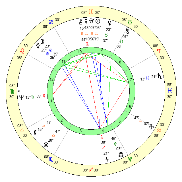 | Neptune | 13 Virgo 58 | 1 Aries 43 | 15 Virgo 49 |
