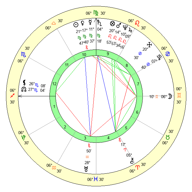 | Saturn | 4 Virgo 56 | 28 Pisces 49 | 12 Virgo 21 |