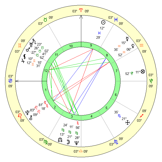 | Moon | 21 Virgo 14 | 3 Taurus 48 | 2 Libra 0 |