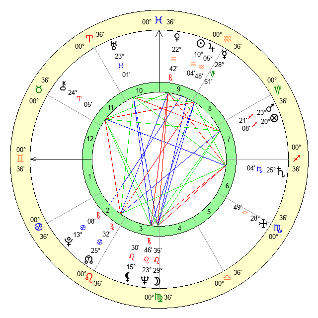 | Saturn | 25 Scorpio 33 | 17 Pisces 13 | 23 Scorpio 40 |