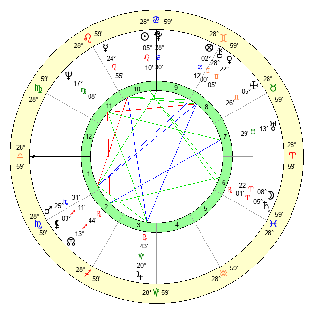 | Mars | 25 Scorpio 30 | 24 Virgo 17 | 16 Capricorn 50 |