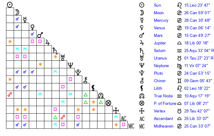 Pluto | 24 Cancer 53 | 2 Aquarius 14 | 26 Cancer 2 |