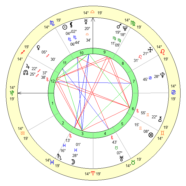 | Mars | 19 Virgo 11 | 24 Scorpio 25 | 9 Scorpio 53 |