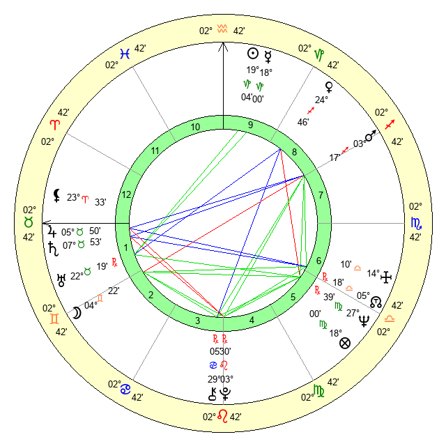 | Neptune | 27 Virgo 40 | 27 Pisces 26 | 25 Virgo 51 |