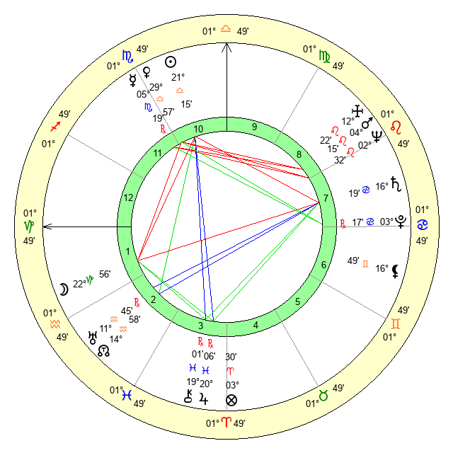 | Venus | 29 Libra 58 | 2 Libra 15 | 16 Pisces 43 |