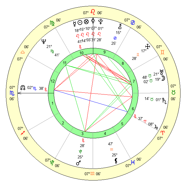 | Venus | 7 Leo 32 | 9 Cancer 56 | 24 Scorpio 27 |