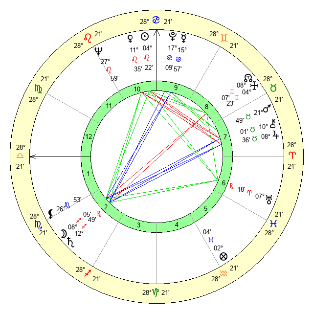 | Mars | 21 Taurus 50 | 23 Virgo 40 | 8 Cancer 33 |