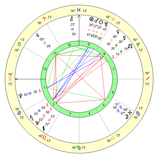 | Sun | 24 Aquarius 26 | 25 Aquarius 15 | 10 Gemini 36 |