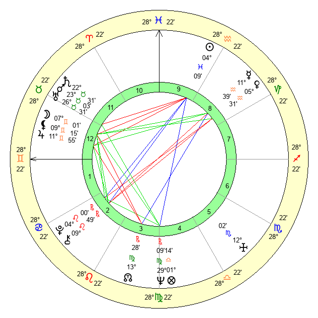 | Moon | 6 Gemini 58 | 5 Capricorn 39 | 19 Gemini 41 |