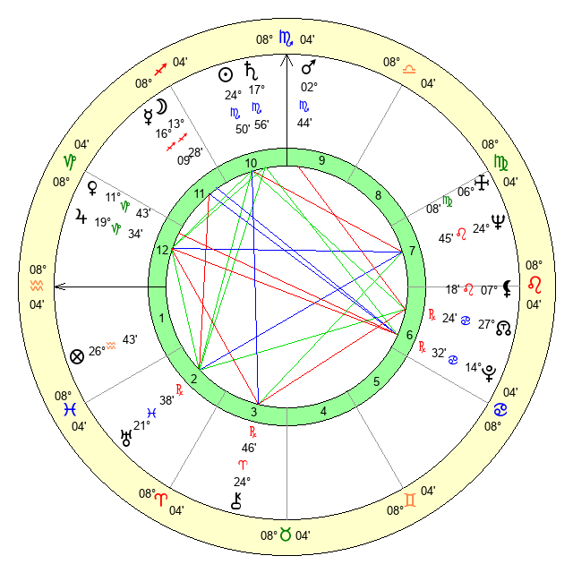 | Sun | 24 Scorpio 51 | 25 Scorpio 50 | 5 Pisces 21 |