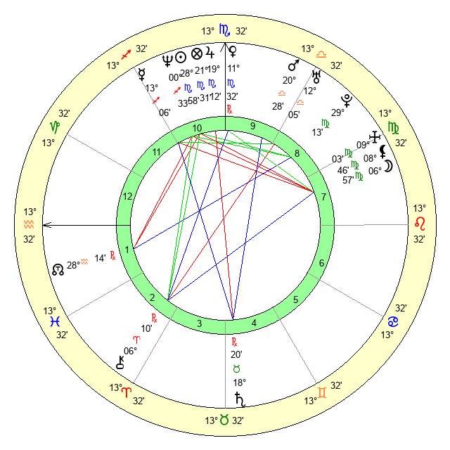 Pluto | 29 Virgo 13 | 0 Aquarius 1 | 29 Virgo 39 |
