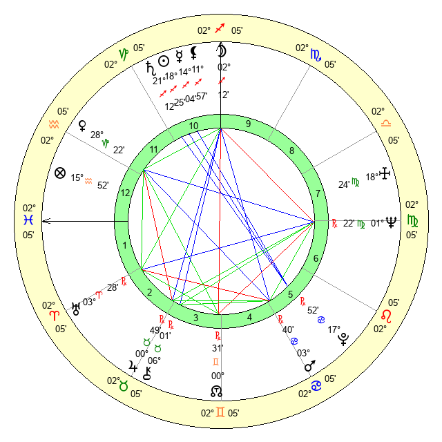 | Moon | 26 Aries 24 | 3 Aquarius 26 | 15 Scorpio 30 |