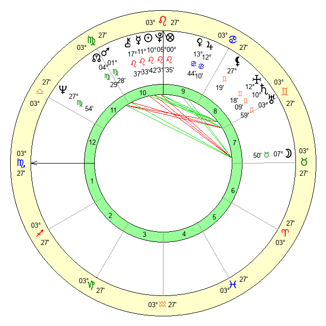 | Sun | 10 Leo 42 | 11 Leo 36 | 1 Scorpio 39 |