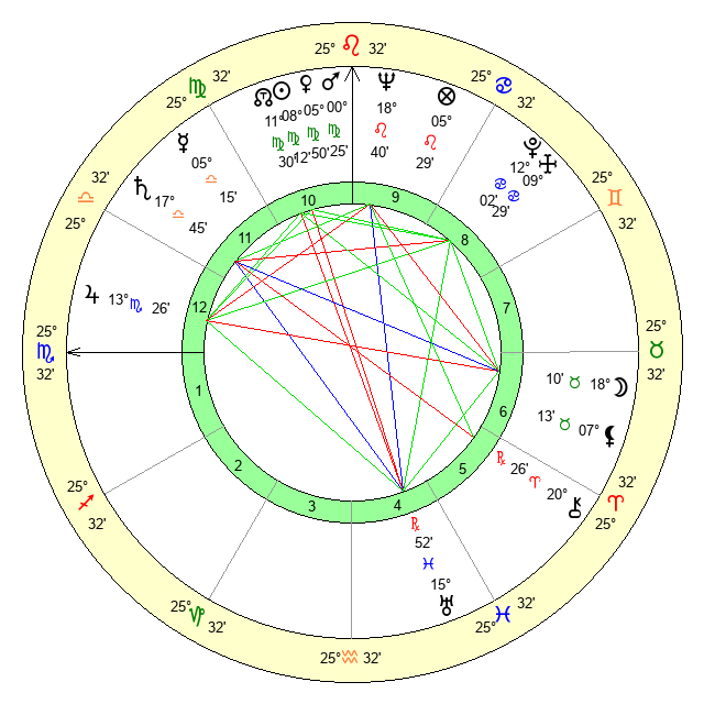 | Saturn | 18 Libra 21 | 29 Pisces 51 | 29 Libra 54 |
