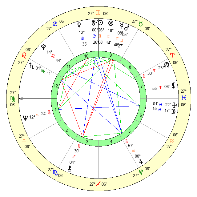 | Mars | 5 Gemini 28 | 0 Virgo 12 | 26 Cancer 32 |
