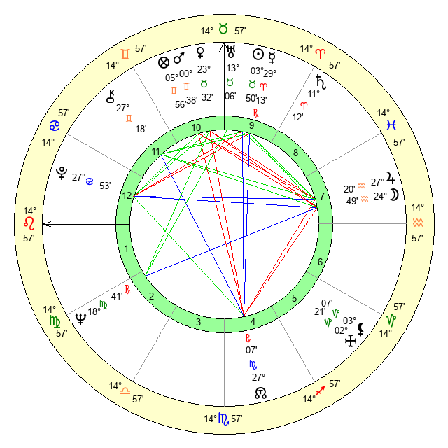 | Mars | 0 Gemini 38 | 2 Leo 47 | 28 Cancer 34 |