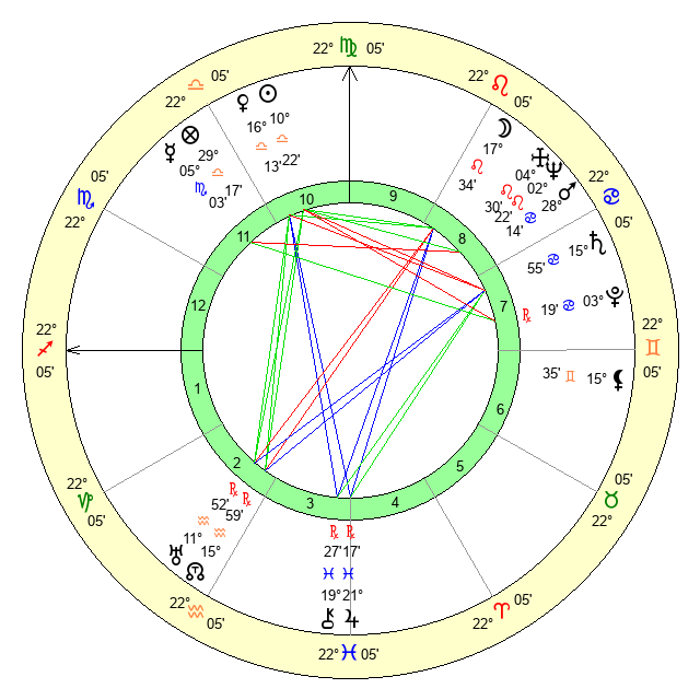 | Venus | 16 Libra 14 | 18 Virgo 38 | 3 Pisces 15 |