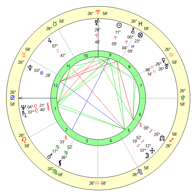 | Sun | 11 Aries 9 | 12 Aries 13 | 24 Cancer 16 |