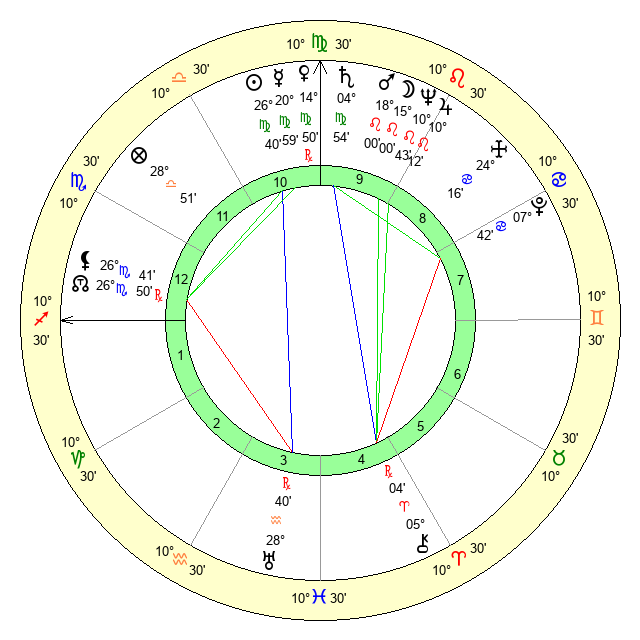 | Moon | 14 Leo 53 | 14 Virgo 58 | 26 Gemini 51 |