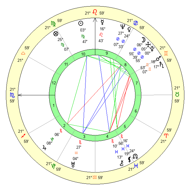 | Mercury | 16 Leo 44 | 19 Leo 21 | 5 Sagittarius 21 |