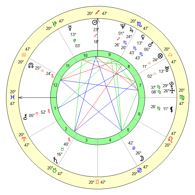 Pluto | 29 Virgo 37 | 0 Aquarius 35 | 29 Virgo 20 |