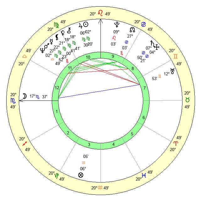 | Sun | 2 Virgo 20 | 2 Virgo 45 | 22 Scorpio 13 |