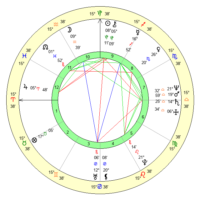 | Saturn | 14 Libra 55 | 26 Pisces 0 | 13 Libra 37 |
