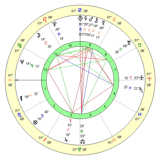 | Pluto | 26 Cancer 14 | 3 Aquarius 18 | 28 Cancer 25 |