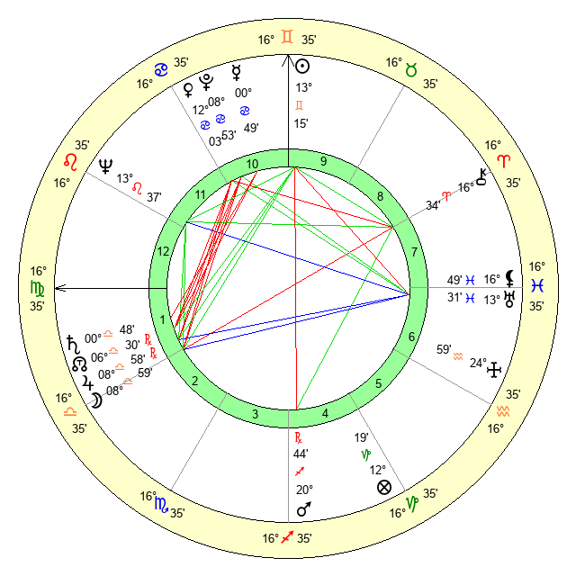 | Moon | 9 Libra 4 | 1 Libra 44 | 7 Cancer 31 |