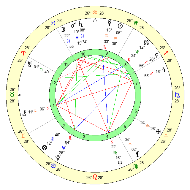 | Moon | 22 Pisces 47 | 14 Capricorn 55 | 2 Cancer 4 |