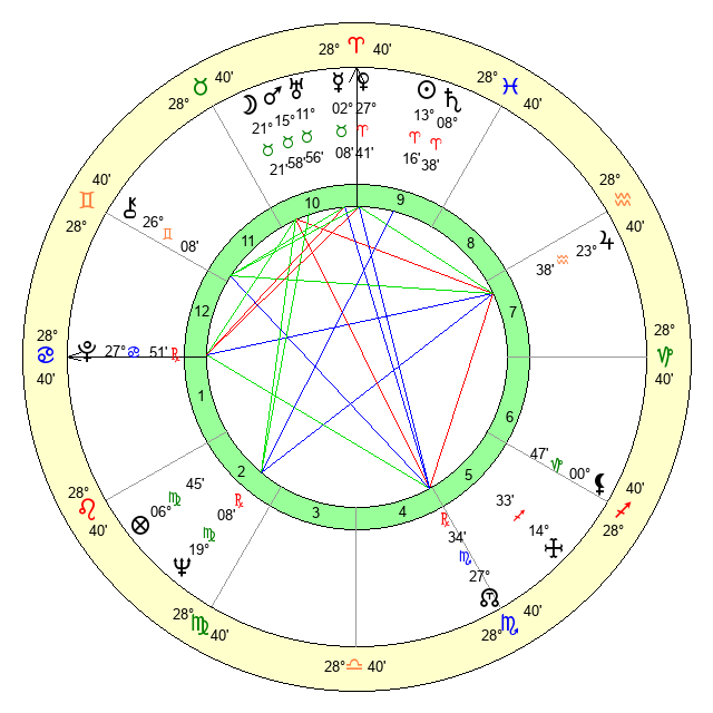 | Sun | 13 Aries 17 | 14 Aries 11 | 7 Cancer 16 |