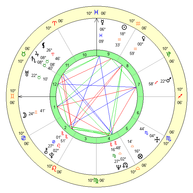| Mercury | 6 Pisces 9 | 17 Aquarius 50 | 7 Taurus 45 |