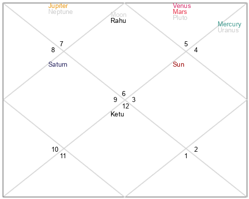 | Rahu | 7 Libra 47 | 21 Pisces 14 | 4 Libra 18 |