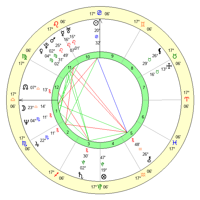 | Venus | 4 Virgo 2 | 10 Gemini 5 | 0 Virgo 22 |